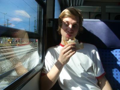Natuerlich hab ich mich nicht lumpen lassen und leckre Sandwiches gemacht, die gleich im Zug verzehrt wurden...
